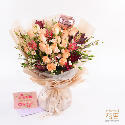 Who says a bouquet is only about roses? This **custom flower bouquet**, merging 18 passionate roses, warm carnations, elegant waxflowers, and unique pincushion flowers, is our fresh take on traditional floristry! It’s not just a visual feast; it represents the richness of your feelings. Our Flower20 exclusive custom fresh flower color service lets your 18 roses stand out from over **100 rose colors**, paired with rare accent blooms to create a stunning **flower bouquet balloon** that exudes artistry and personality. This is the magic of **flower shop self-selection**: every detail speaks to your uniqueness.